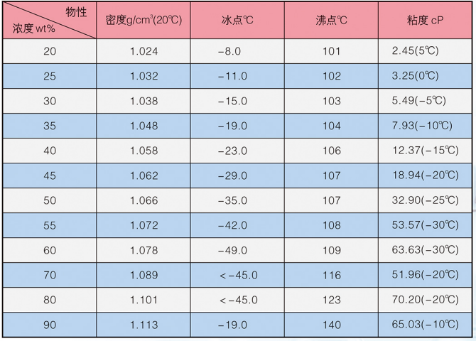 LM-4系列冰河冷媒由二元醇改性構成,主要添加劑包括防腐蝕劑,防霉劑,增溶劑,水穩(wěn)劑等。外觀為淺色液體。安全低毒、無異味、不易燃、不易揮發(fā)。20℃時,原液密度為1.105~1.125g/cm',粘度為13.92mPa·s(cP),比熱為0.619cal/g℃,熱導率為0.26W/mK。沸點高于140℃,閃點高于120℃。