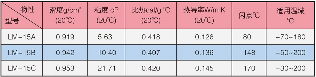 LM-15系列冰河冷媒由聚硅氧烷改性而成。外觀為無色或淺色液體,不溶于水。具有生理惰性、良好的化學穩(wěn)定性、凝固點低、使用壽命長等特點,對以金屬為代表的眾多材料,幾乎不會產(chǎn)生不良的影響,可應(yīng)用于醫(yī)藥、化工、新能源等領(lǐng)域的制冷系統(tǒng)。