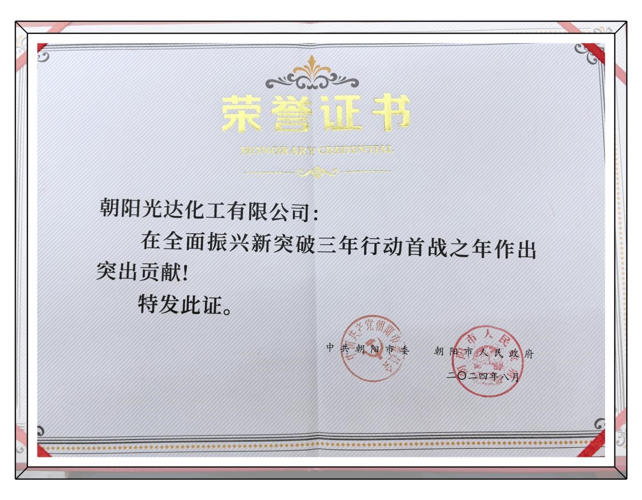 此次表彰不僅是對(duì)光達(dá)化工過去成績(jī)的認(rèn)可,更是對(duì)其未來(lái)發(fā)展的一種期待。站在新的起點(diǎn)上,光達(dá)化工將以此次表彰為契機(jī),繼續(xù)發(fā)揚(yáng)敢闖敢干的精神,堅(jiān)持高質(zhì)量發(fā)展道路,為朝陽(yáng)市乃至全國(guó)的新型工業(yè)化建設(shè)做出更大貢獻(xiàn)。