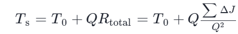 其中TS為芯片控制溫度,T0為環(huán)境溫度。Q為傳熱量,R是傳遞過程的熱阻。J是整個(gè)過程的耗散。理解這個(gè)傳熱過程的公式,可以借鑒一下電路的公式。電壓,電流,電阻,要想耗散少,必然要降低電阻。傳熱過程的每一個(gè)界面都是一個(gè)熱阻。因此熱阻是整個(gè)換熱設(shè)計(jì)的一個(gè)重要環(huán)節(jié)。